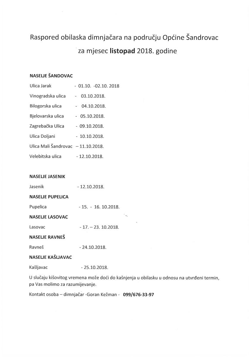 24 9 '18 Raspored obilaska dimnjačara za mjesec listopad 2018. godine Poštovani, u privitku možete vidjeti raspored obilaska dimnjačara za mjesec listopad 2018. godine.